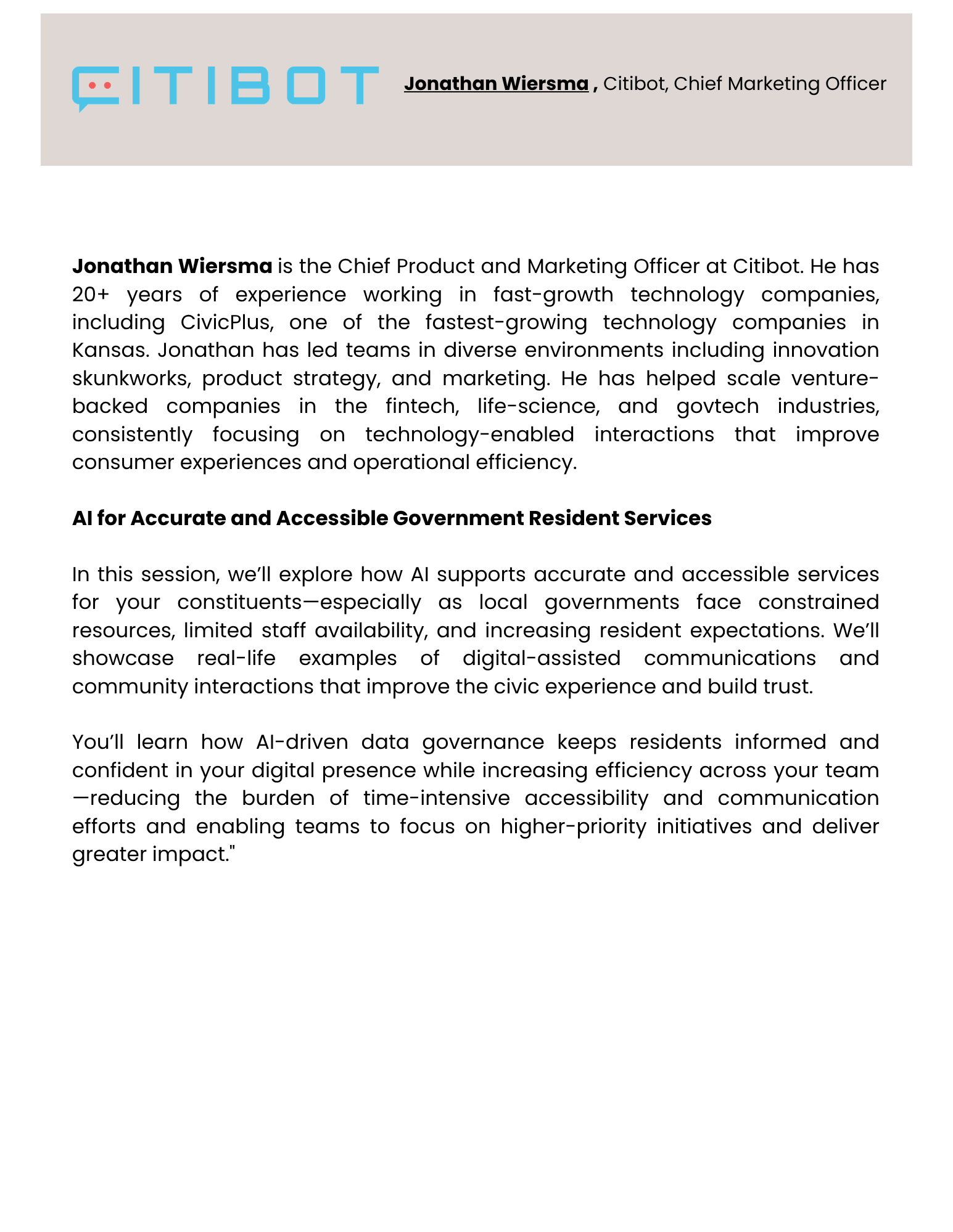 PRESENTER: Jonathan Wiersma, Chief Marketing Officer, Citibot