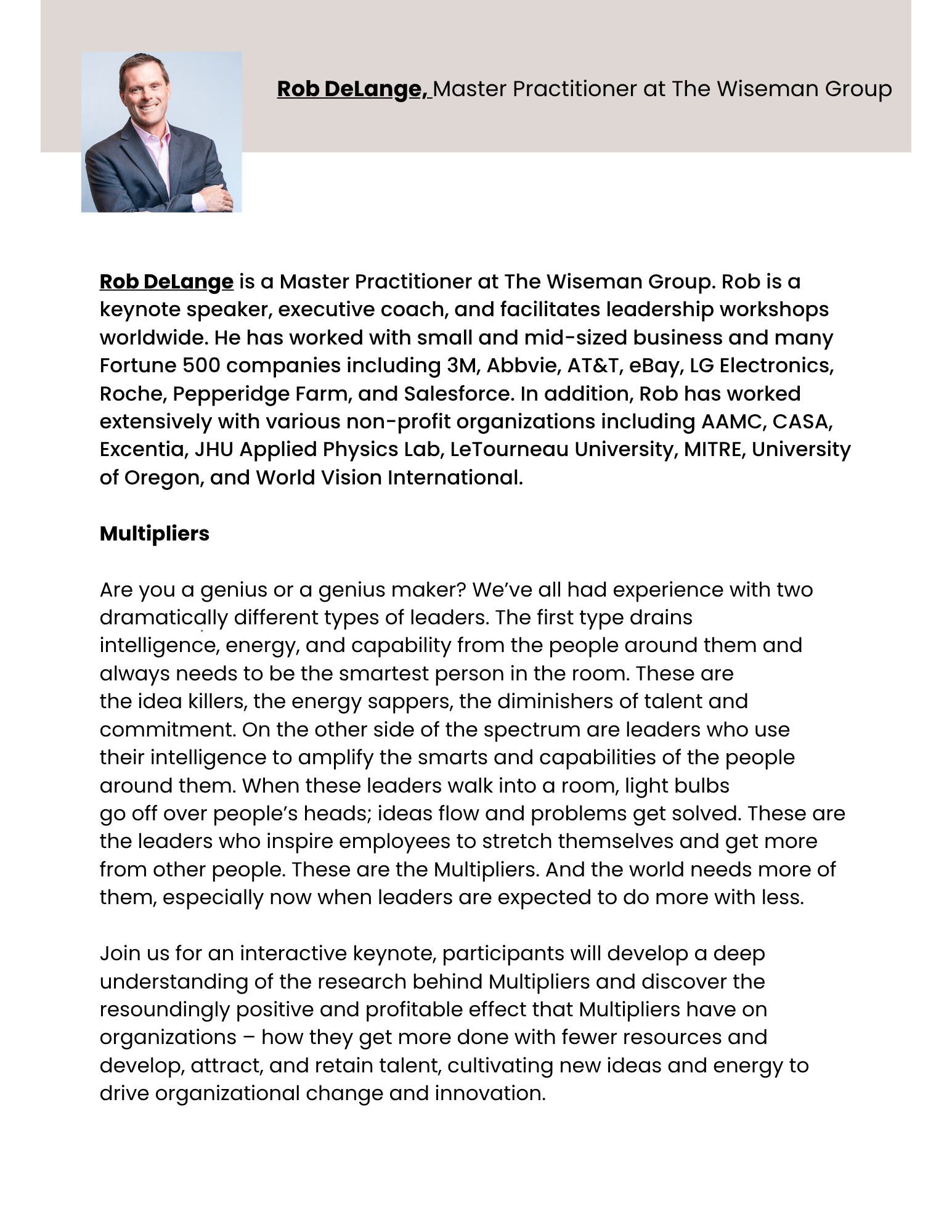 Keynote Speaker: Rob DeLange, Master Practitioner, Wiseman Group