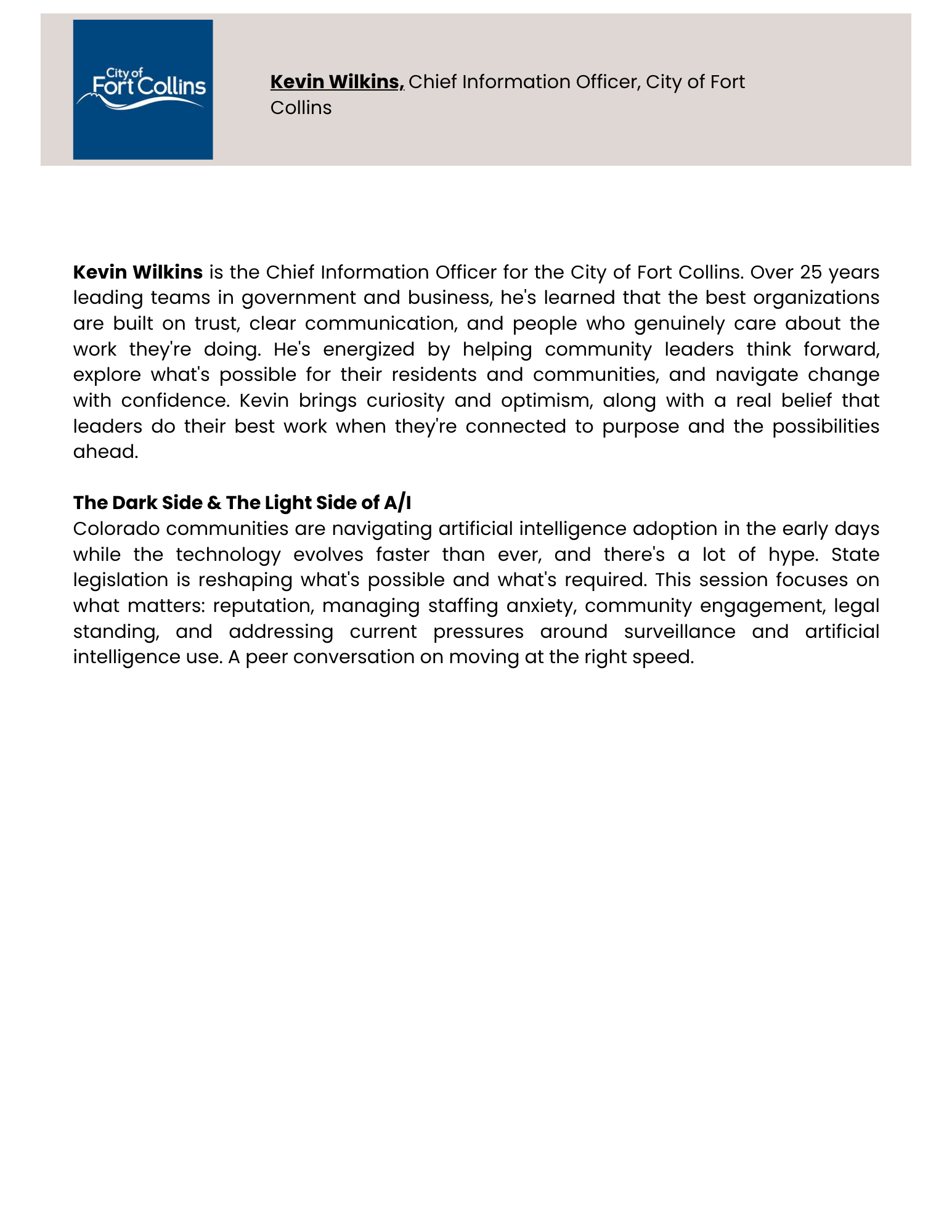 PRESENTER: Kevin Wilkins, CIO, City of Fort Collins