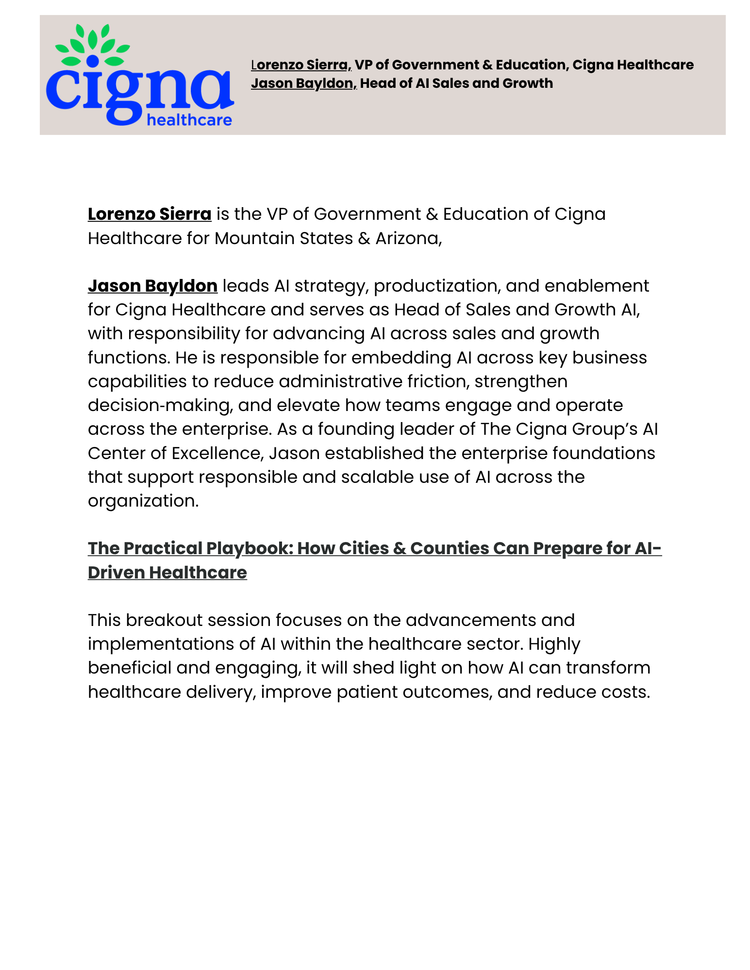 PRESENTERS: Lorenzo Sierra, VP of Government & Education, Cigna Healthcare and Jason Bayldon, Head of AI Sales and Growth, Cigna Healthcare